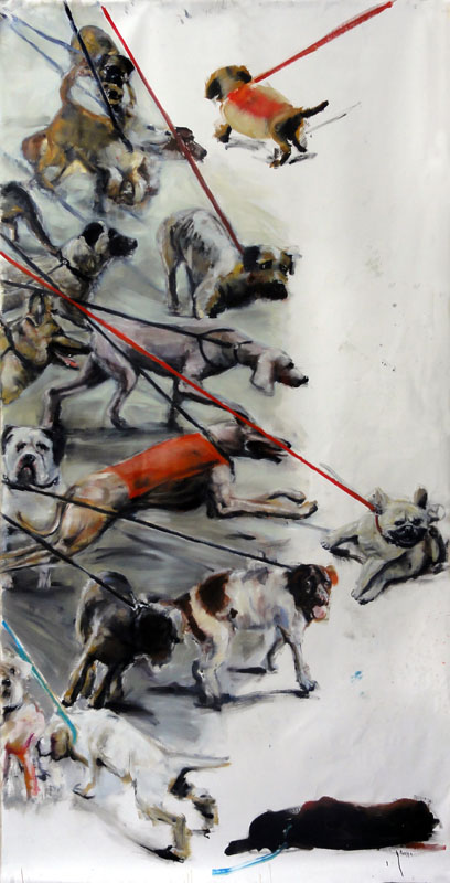 30 millions d’amis en laisse, 300 x 150 cm, huile sur toile, 2011
