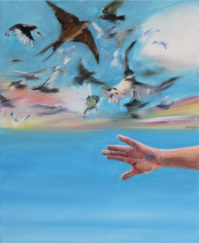 Tendre un perchoir 4, 61 x 50 cm, huile sur toile, 2023