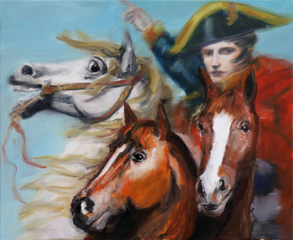 Image précédente Image suivante RAUZY_2023_10_11_1530 Les amis du cheval de Bonaparte 3, 50 x 61 cm, huile sur toile, 2023